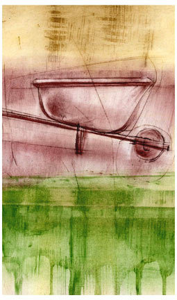 Perhaps this piece was affected by the fact that I played Leonard Cohen and “Like a Bird on a Wire” in the studio for about three months straight. I was fortunate to go to his once-in-a-lifetime concert last month, and it exceeded all memory and expectation. I’m interested here in the idea of freedom, the real and unreal and the precipitous edge between. Offset paper lithography using reproductions of wood cuts from the 1700’s, hand-printed over pastel and watercolor.