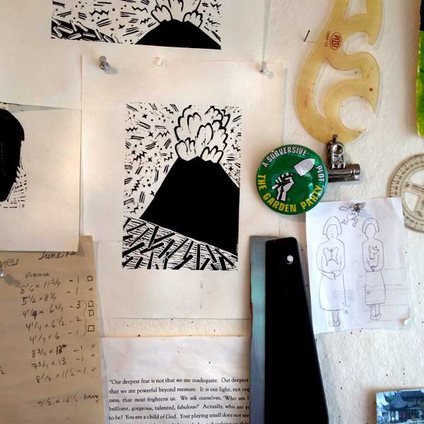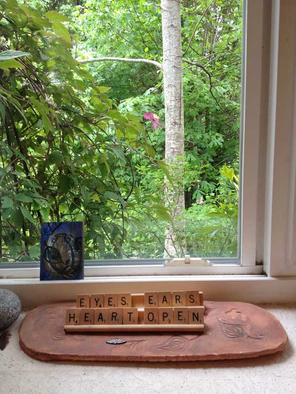 Last month we met in Bremerton, at the tile studio of Paula Gill. Paula works surrounded by a rambling country garden exploding with vegetables and bouquets. Everywhere you look there is something to make you smile. It was a beautiful day in an environment designed to nourish the spirit.