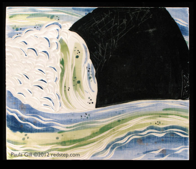 Here are a few more pieces from the river series. If you are a print maker I think you will especially appreciate the paper-like texture in these glazes: