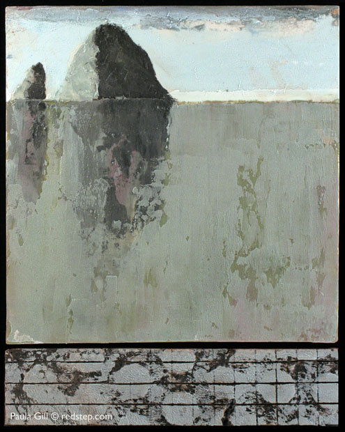 I spent 3 years of my childhood in Astoria, where I played for hours on the nearby coastal beaches. I reconnected with those happy childhood memories on repeated trips to the Oregon Coast as an adult. I am especially drawn to Cannon Beach and Haystack Rock. In the current Seascape series I explore the tension that human intrusion imposes on the pristine natural landscape by introducing mechanically manufactured textures into the composition, either as a separate tile to create a diptych, or as an integral element of the main image.