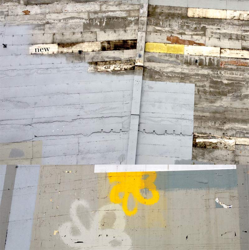 Recent walks have been under deeply pessimistic skies. Seattle is known for its one hundred words for bleakness, and Paynes and Davey’s Grey would be among them. Yet a person’s mind turns to possibility. And hope. These collages are composed of pieces of the world bordered by Seattle’s Fifteenth Avenue East and First Avenue, and north to south, Eighth and Aurora and Jackson Street, with a lot of time spent in the parking lot at 2nd and Pike.
